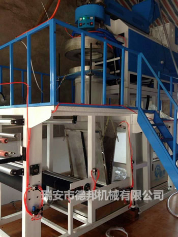 根據(jù)工藝要求將擠出機(jī)抬高至3米,吹膜方式:下吹法。卷取裝置采用力矩電機(jī),可保持適宜的張力,收卷整齊,換卷方便。